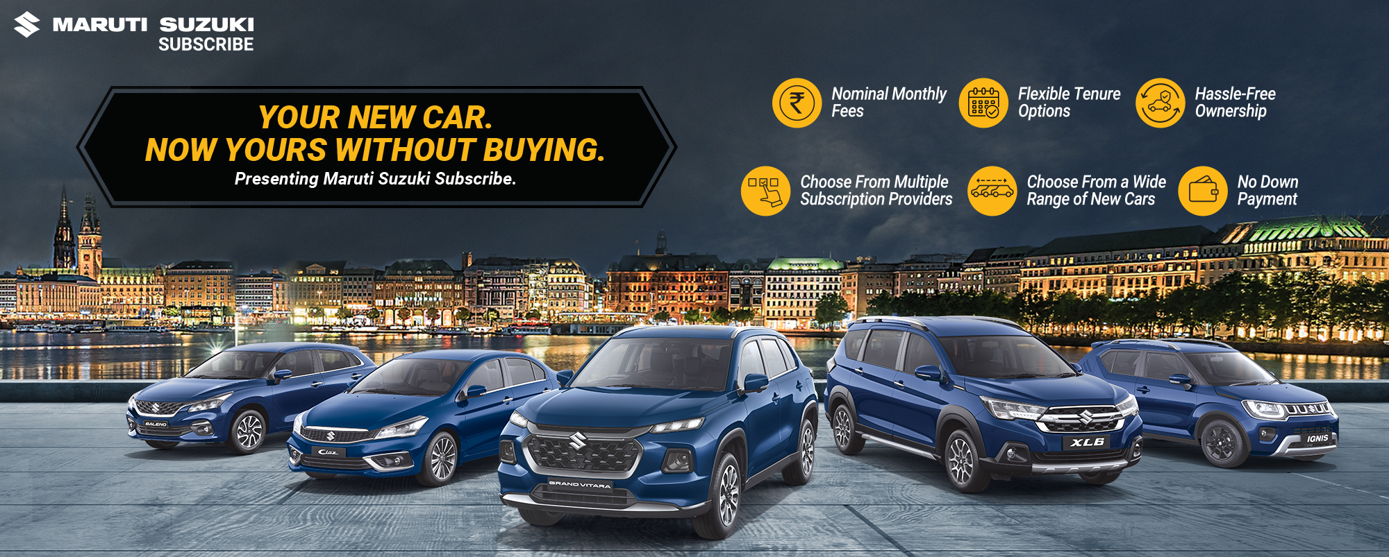 Maruti Suzuki Subscribe enables all customers to enjoy driving their preferred Maruti Suzuki cars without having to deal with all the financial responsibilities that come with owning a car.All you need to do is opt for a monthly subscription plan at a fixed monthly fee, which includes the routine maintenance and insurance costs, and choose a flexible tenure. At Dream Vehicles Pvt Ltd in, , Wadhwan, all Hatchback, Sedan, SUV, the MUV models line-up includes Baleno, Invicto, EVitara, Jimny, Ciaz, Ignis, Fronx, Grand Vitara, XL6. Here, you will enjoy Maruti Suzuki Subscribe benefits such as: